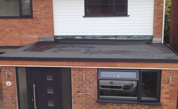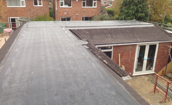 Sjroofers removed the existing flat roofs and replaced, we fitted new rafters ,new boards , new fascias ,new guttering and down pipes and a new 3 Layer Felt roof.