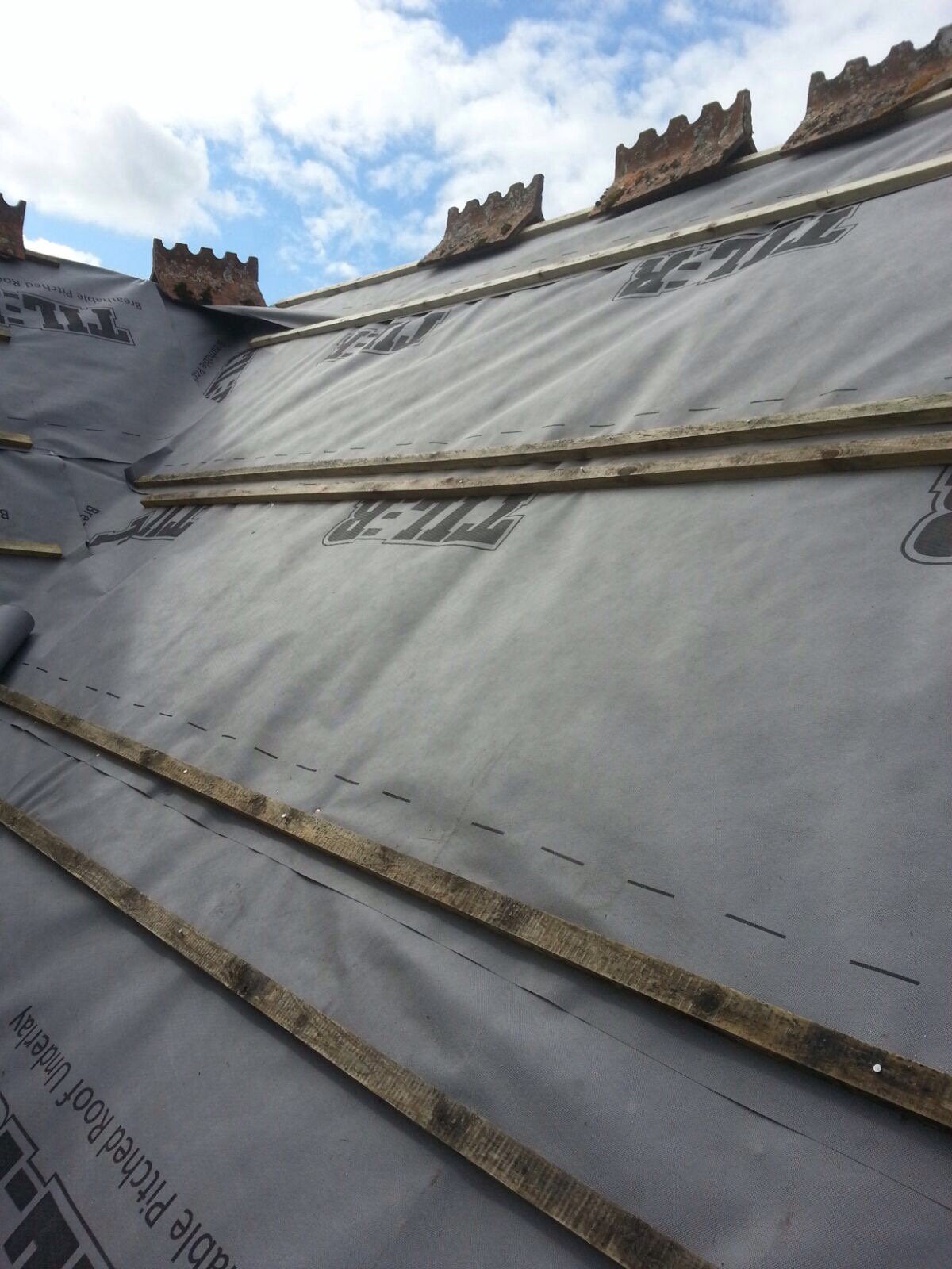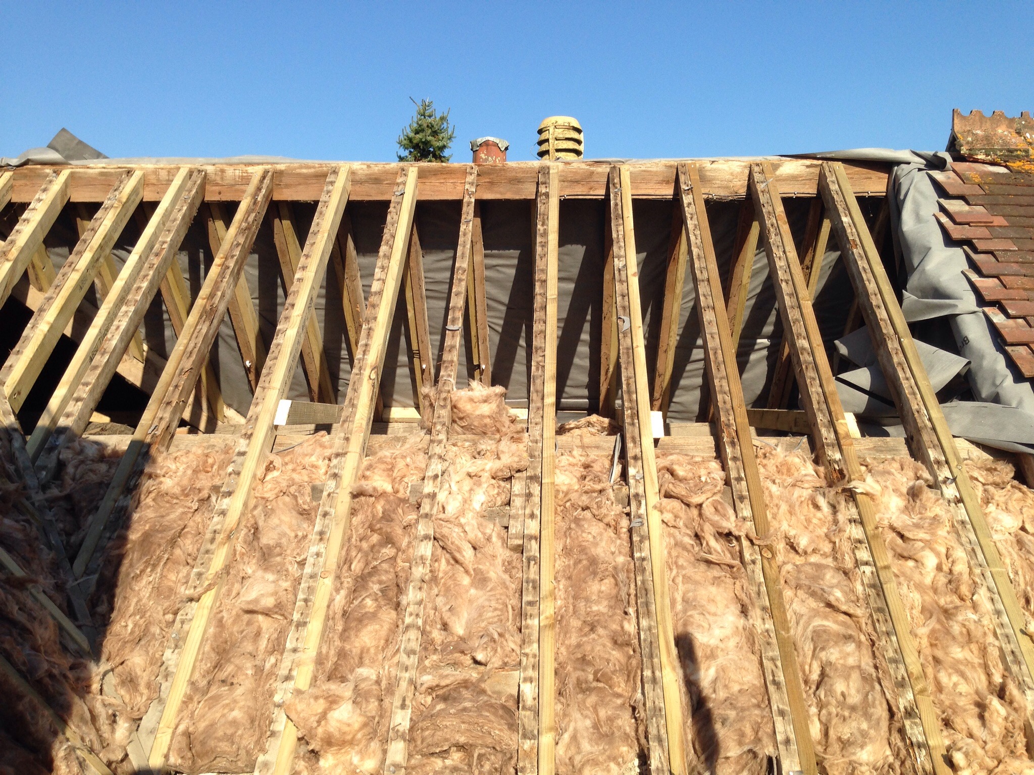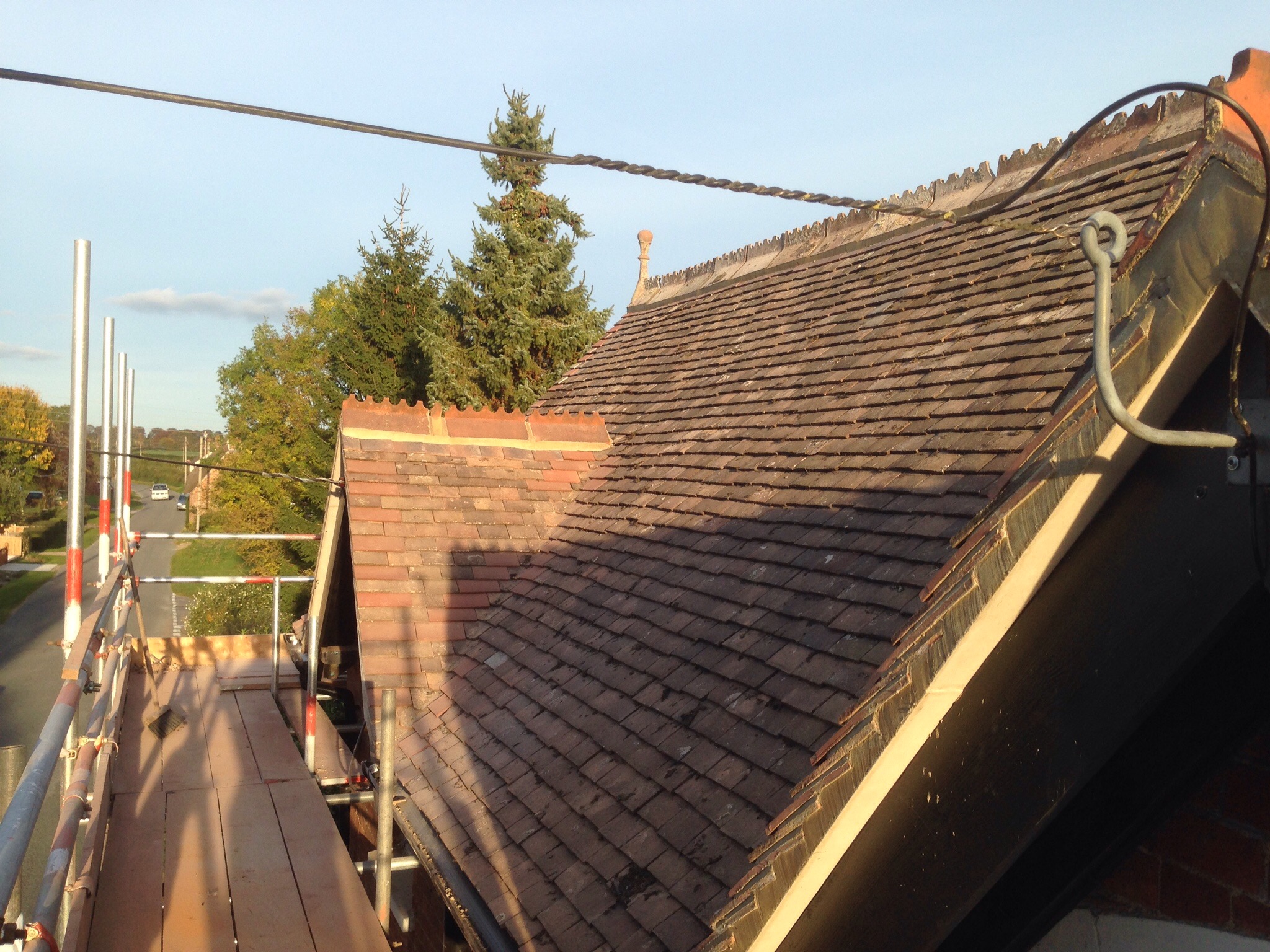 Re-roof using second hand peg tilesOctober 21, 2015 in Other Services / Pitched Roof Projects by Sean We fitted new 45mm/95mm treated timbers to the rafters with timber locks. We rebuilt all gables and fascia lines We reused the original tiles and ridges to keep its traditional look .