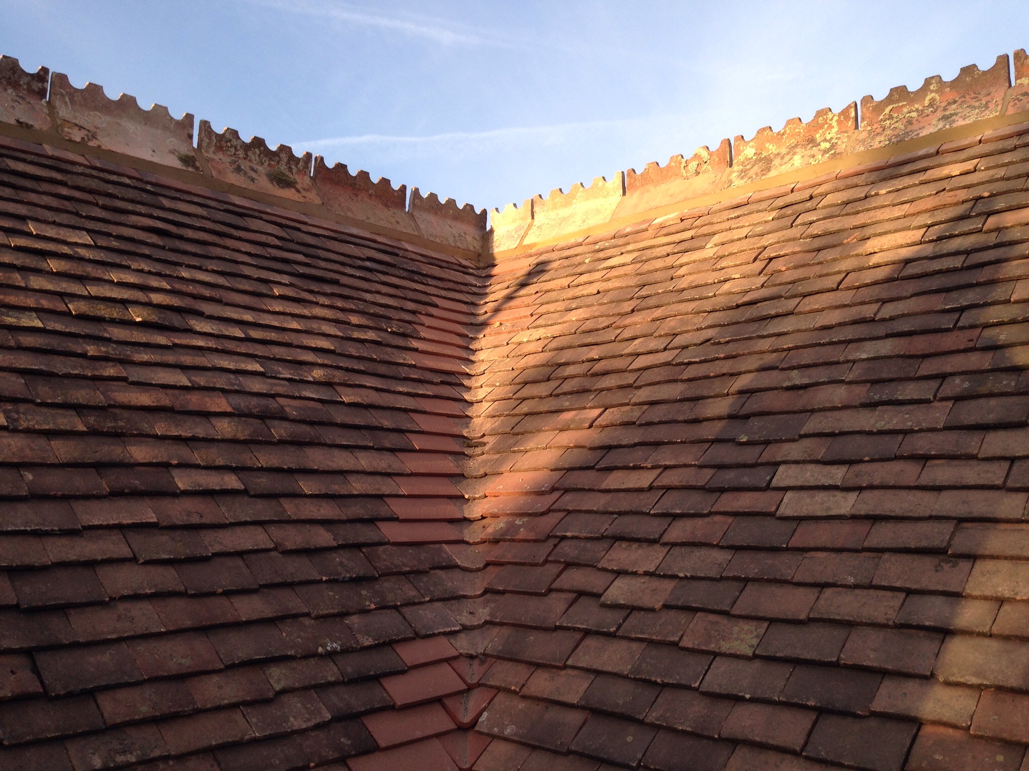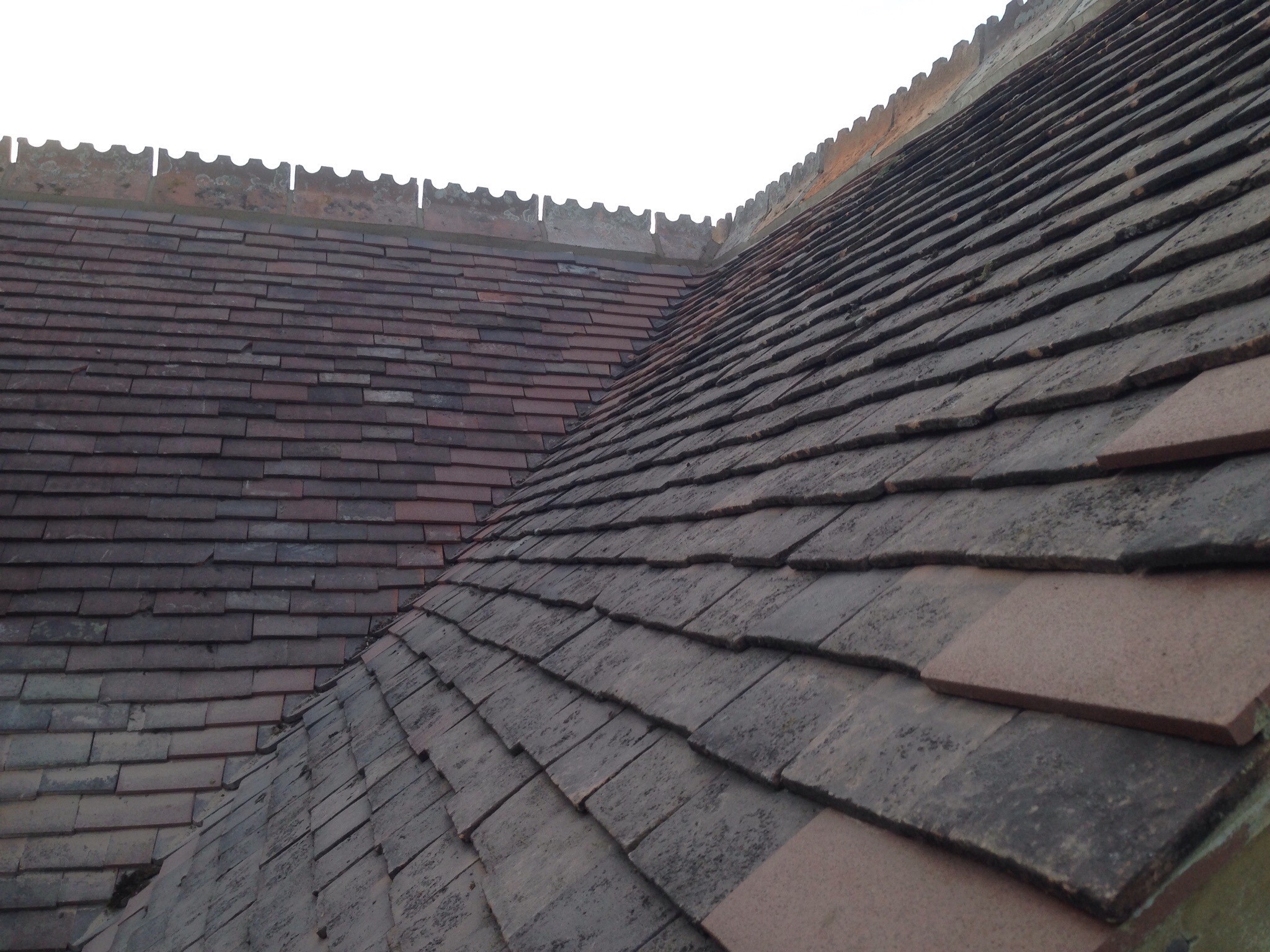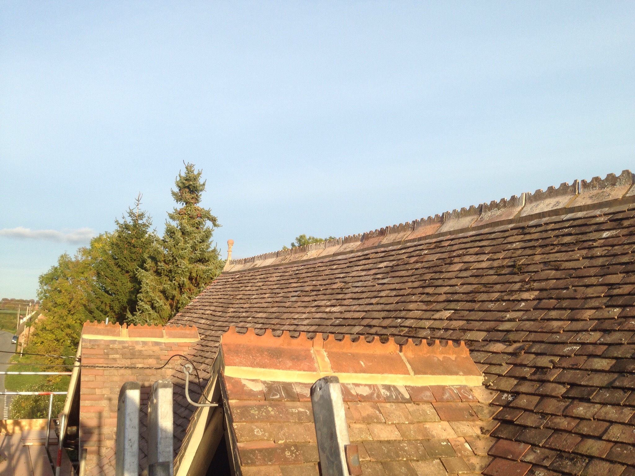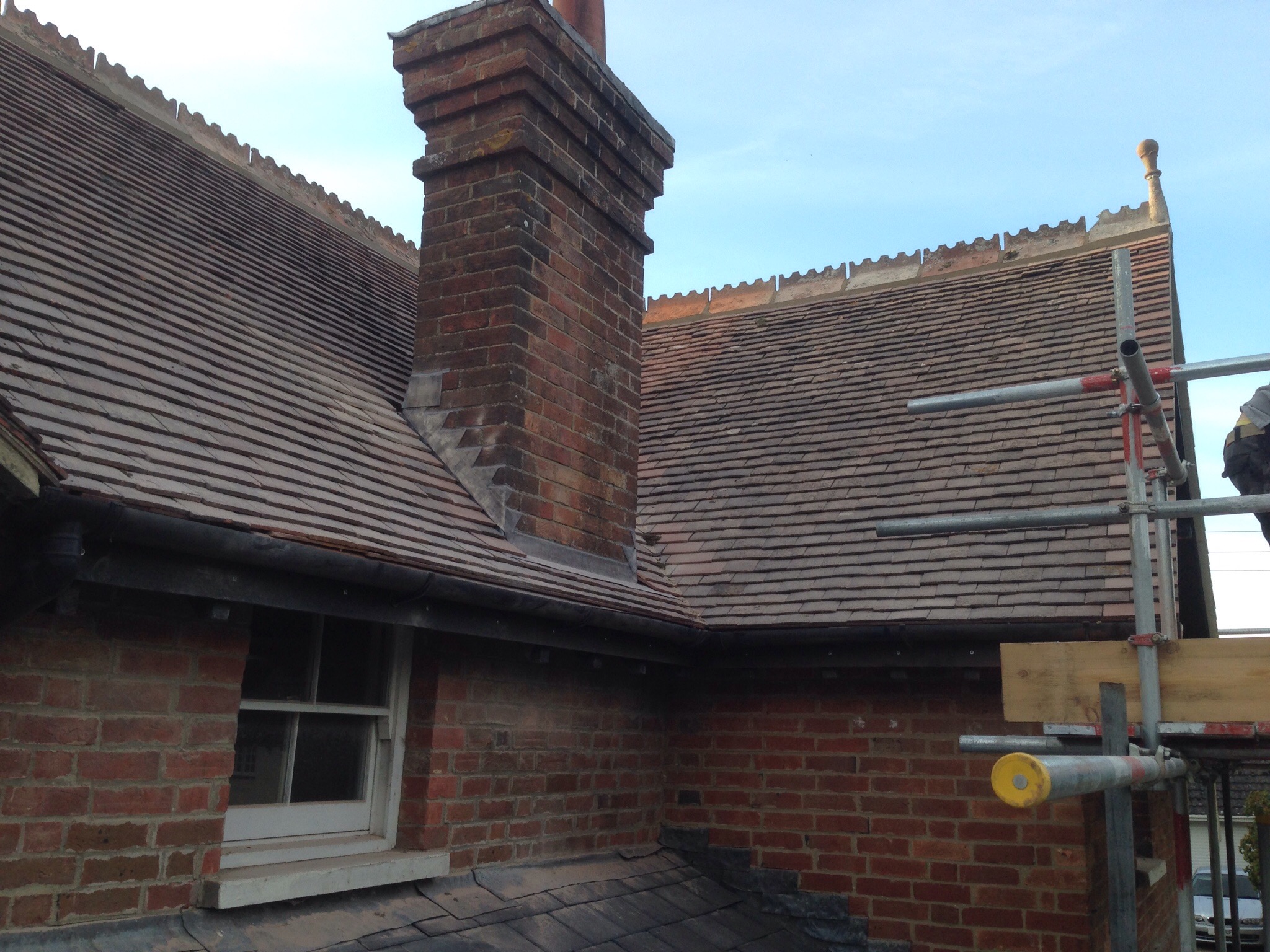 Re-roof using second hand peg tilesOctober 21, 2015 in Other Services / Pitched Roof Projects by Sean We fitted new 45mm/95mm treated timbers to the rafters with timber locks. We rebuilt all gables and fascia lines We reused the original tiles and ridges to keep its traditional look .
